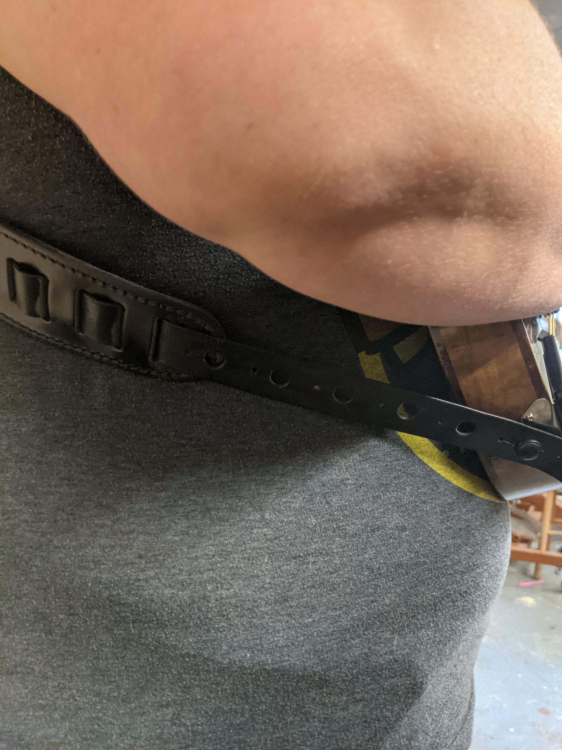 We think this is the most functional and comfortable Mandolin strap on the market. Suitable for both F-Style and A-Style Mandolins. The strap is 2 1/4" wide and tapers to 1 1/2" with an asymmetrical cut to fit the contours of your body. Each strap is made from three different types of leather to utilize the different properties of each type of tannage.